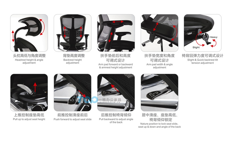 根據(jù)自己的習慣,網(wǎng)布椅扶手可以全方位的調(diào)節(jié),這款簡潔的外觀加上容易控制,得到許多的人贊美和喜歡