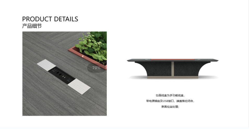 - 臺(tái)面采用50MM厚E1環(huán)保MFC板材60度斜邊工藝處理,全A標(biāo)準(zhǔn)PVC封邊,斜邊油漆工藝處理,支撐柜體采用16mm厚E1環(huán)保MFC板材,異形處理,香檳金拉絲紋理板材線條點(diǎn)綴;所有板材采用德國(guó)夏特飾面紙;配置金屬拉絲多功能線盒。